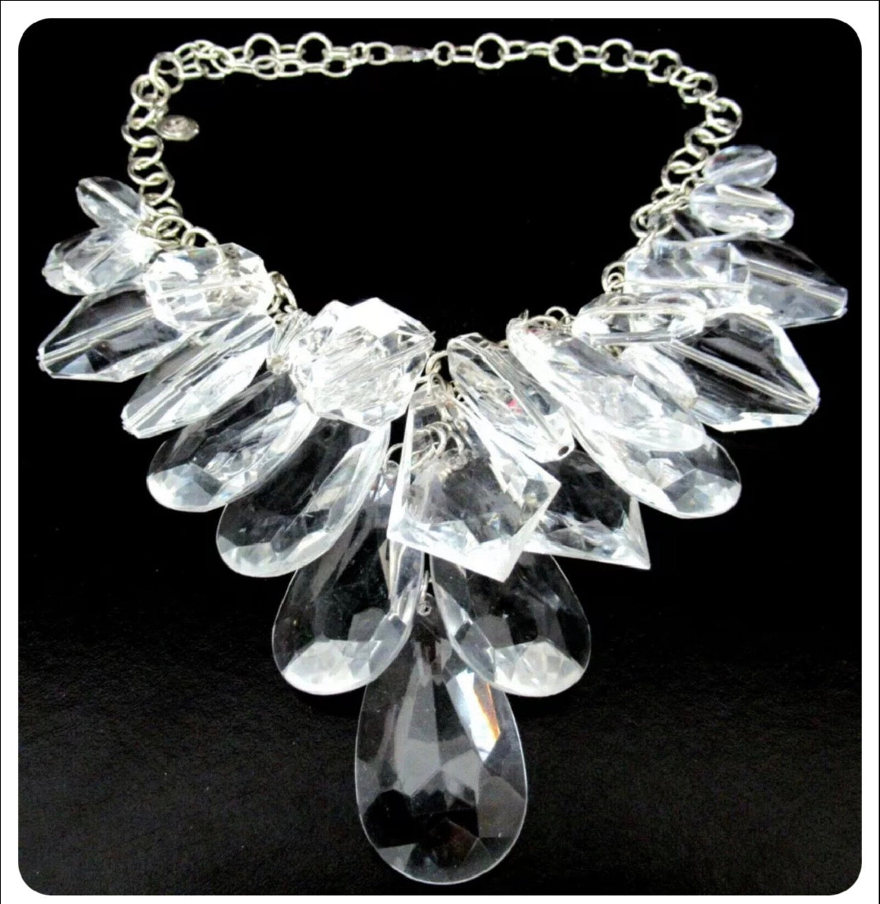 GRAZIANO Gorgeous Clear Lucite Ice Crystal Bib Statement Necklace!