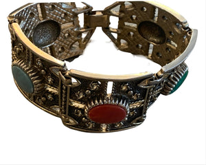Gothic Regalia, Mid Century Sarah Cov Ornate Bracelet with Jewel tone Cabochons