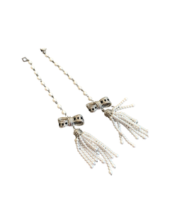 9 Inches Shoulder Dusters! Faux Pearl with Tassels and Silver tone Bows with Rhinestones