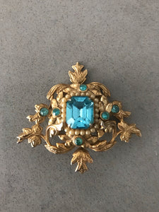 Coro Coronation Vintage Brooch with Dazzling Aqua Rhinestones