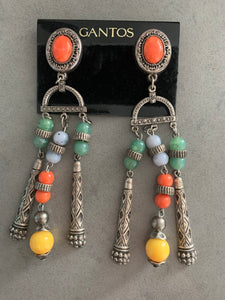 Gantos Boho Shoulder Duster Statement Earrings, Long Runway Style Boho Beaded Dangles