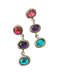 Vintage 80s Rainbow Dangles, Silver tone Statement Earrings